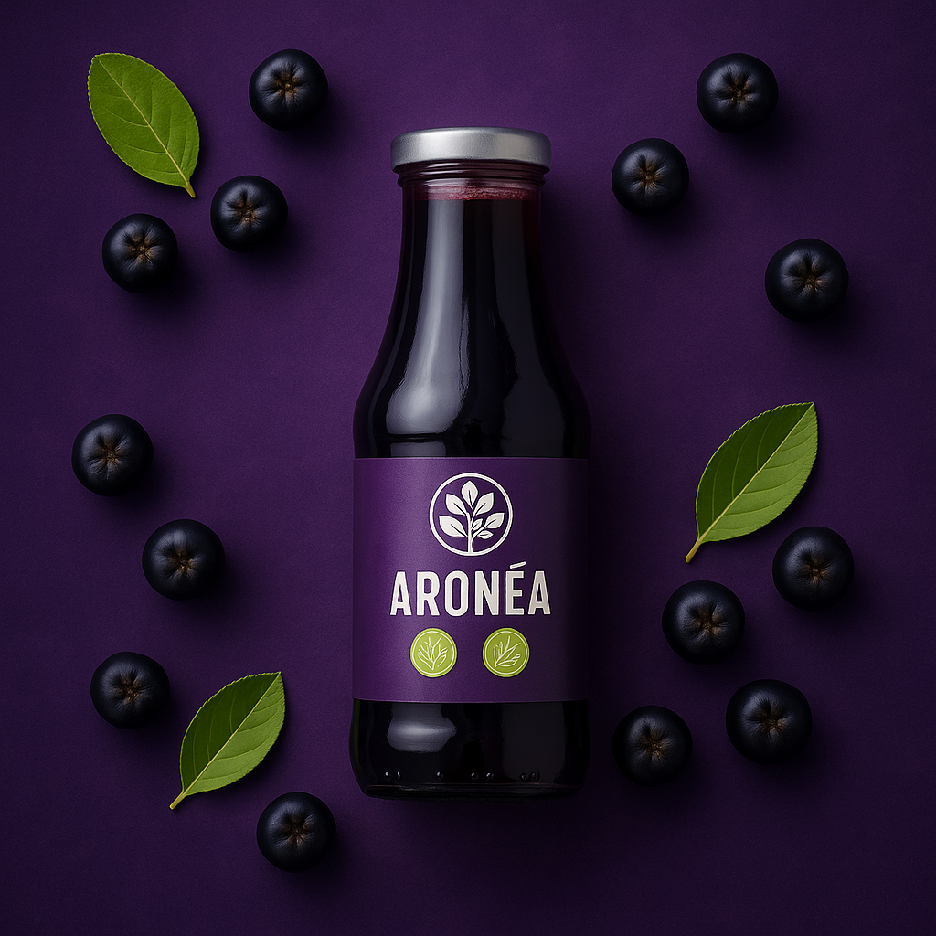 Redescoperă gustul autentic al naturii cu sucul Aronéa, obținut exclusiv din fructe de aronia românească, culese manual și presate la rece.
