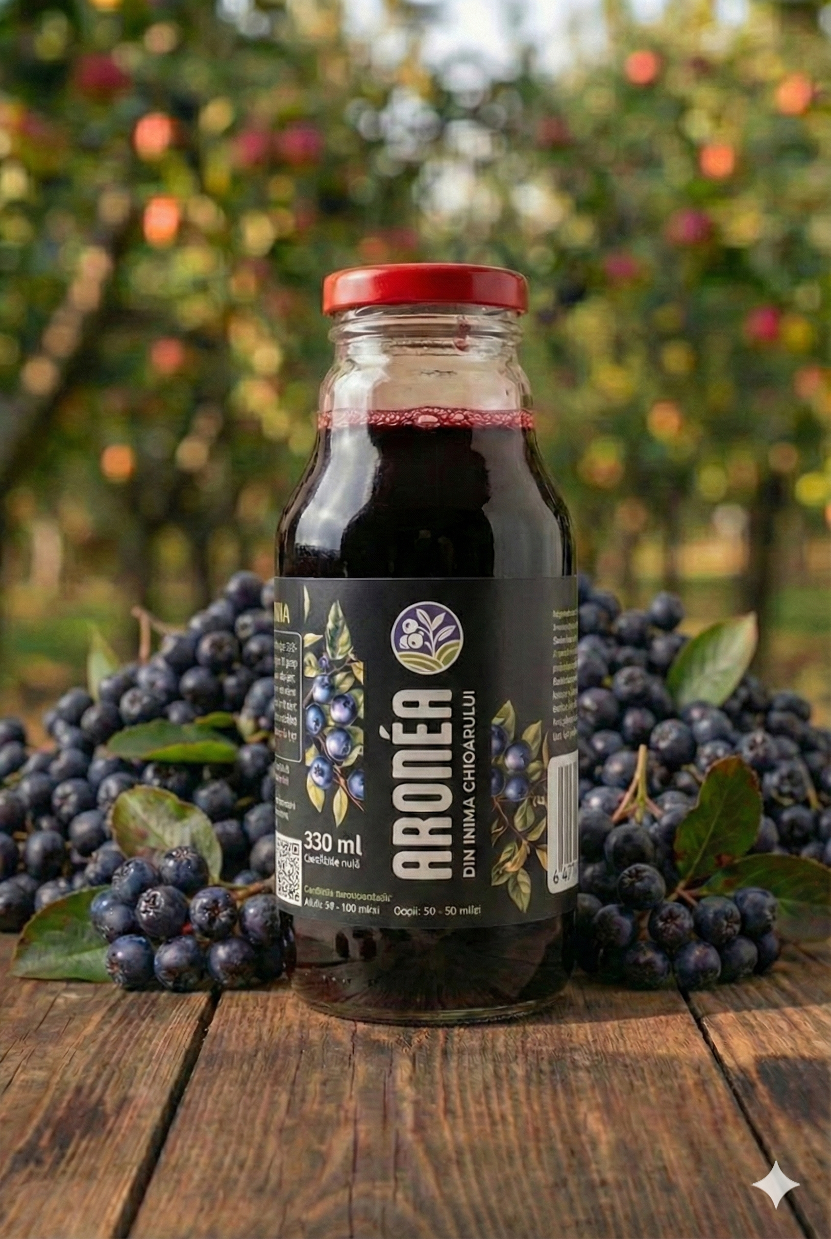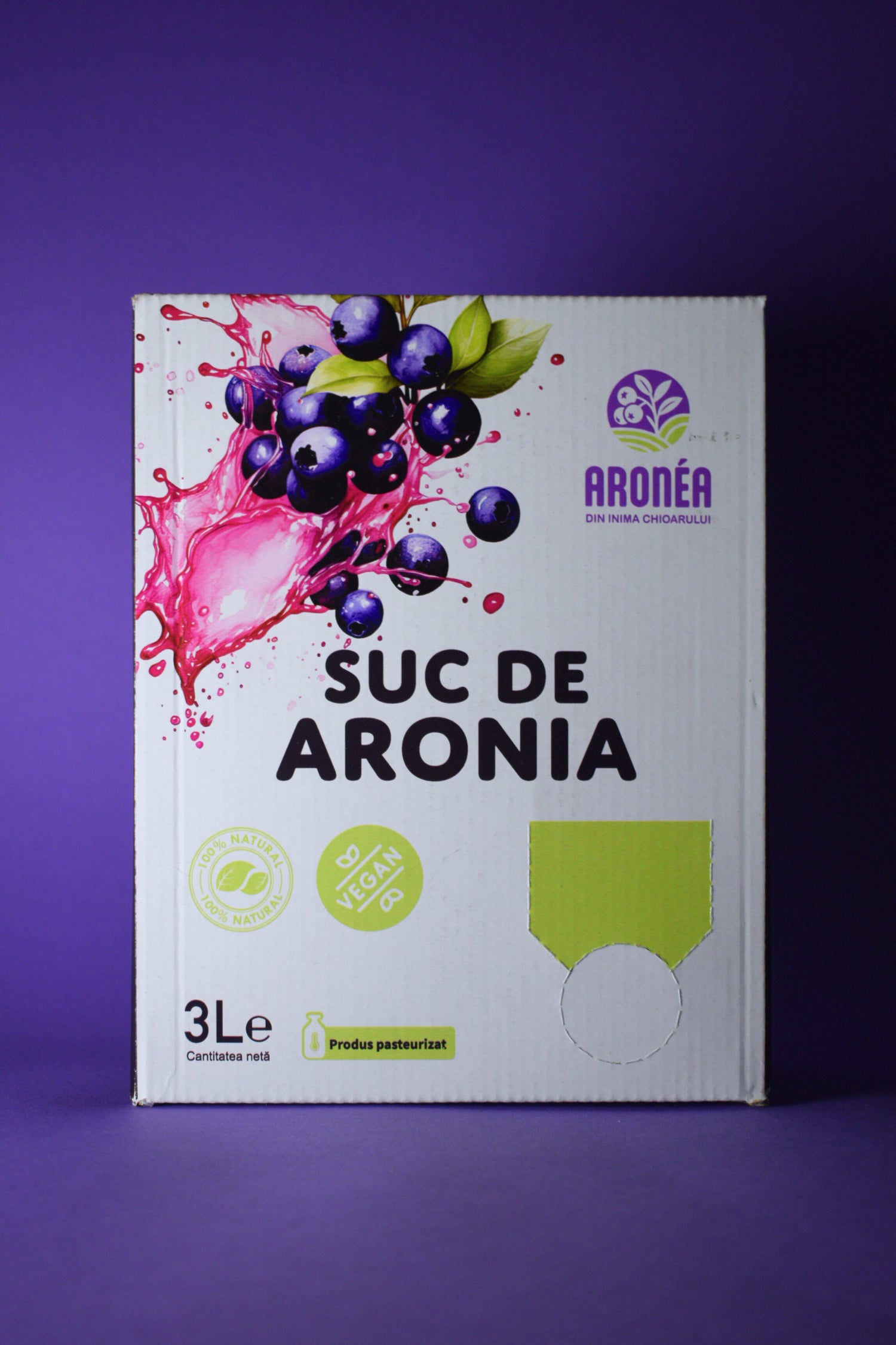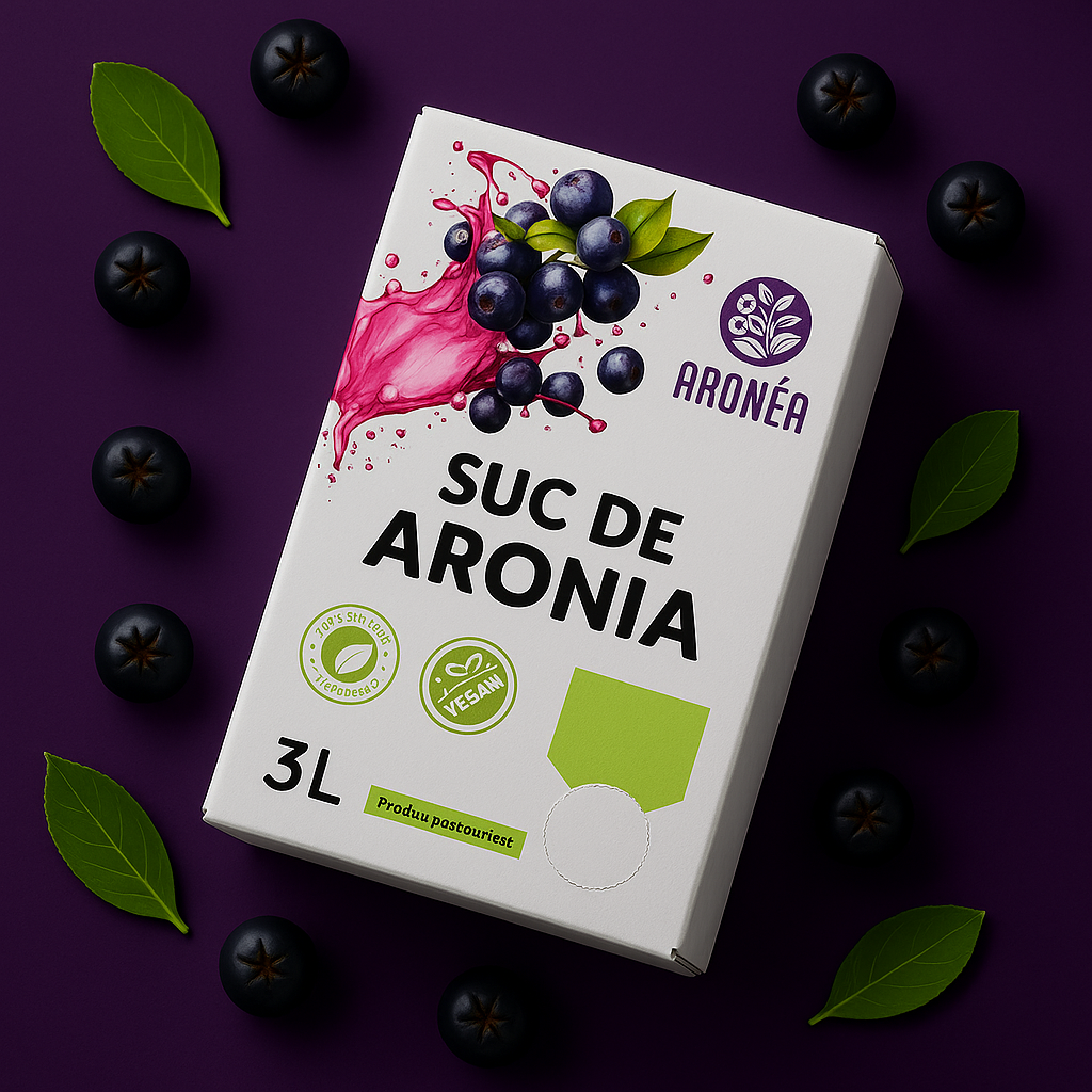 Redescoperă gustul autentic al naturii cu sucul Aronéa, obținut exclusiv din fructe de aronia românească, culese manual și presate la rece.